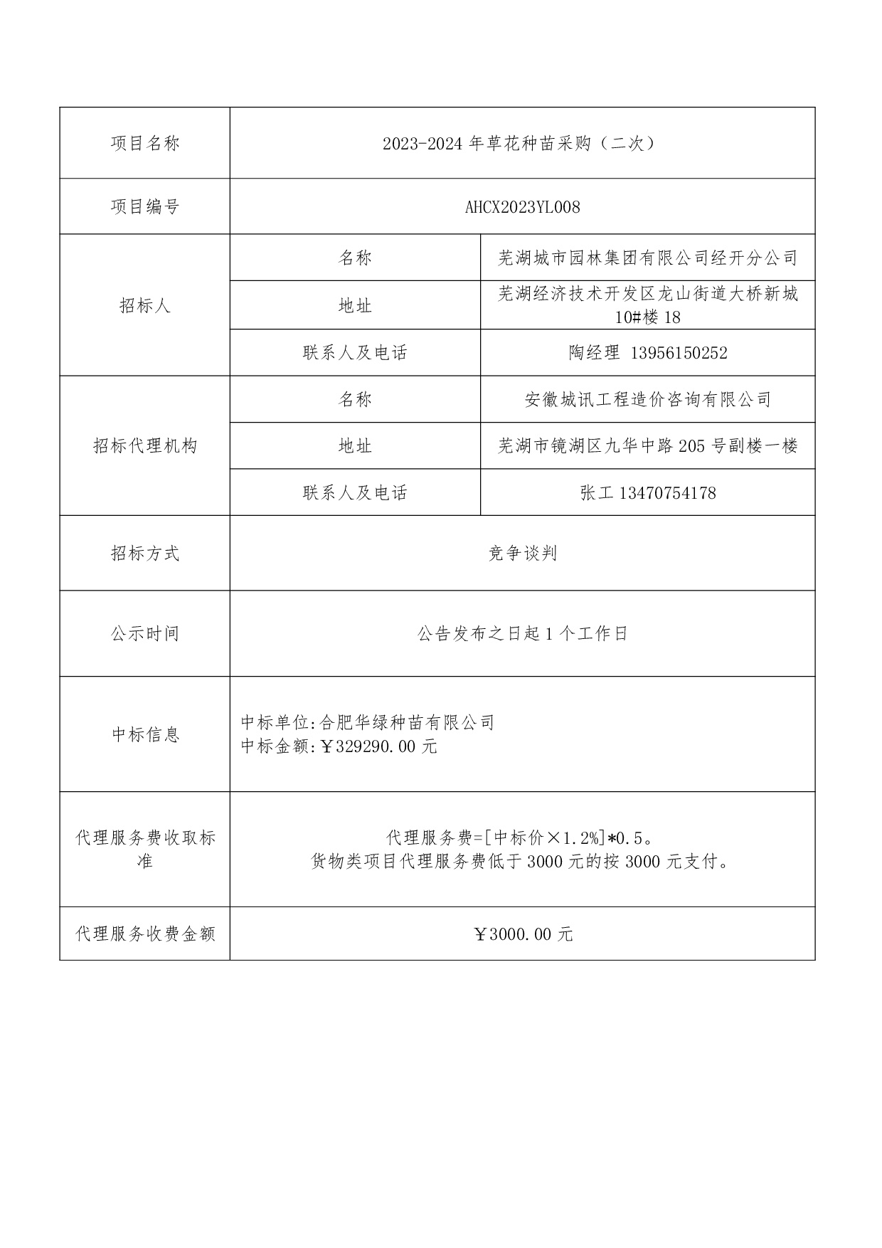 2023-2024年草花種苗采購(二次)中標結果公示